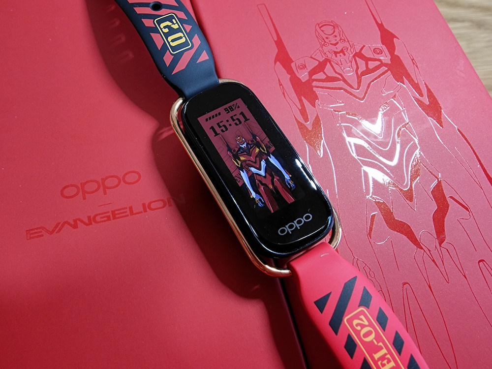 OPPO手环EVA限定版以新世纪福音战士中EVA二号机驾驶员明日香作为基础意象,以赤色底色的明日香色作为主色彩,展示出了明日香身上满满的生机。内置多种EVA表盘,可做到一周不重样。金色的表冠护圈以及表带扣的参加,与红黑两种色彩相辅相成,为玩家而打造。